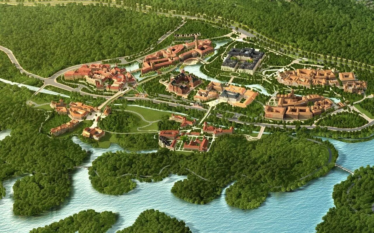 参考捷克小镇克伦诺夫的城堡、教堂、修道院等大型建筑的建筑特色,整合蜿蜒曲折、壮丽秀美的河流,构成尺度宜人的步行空间。